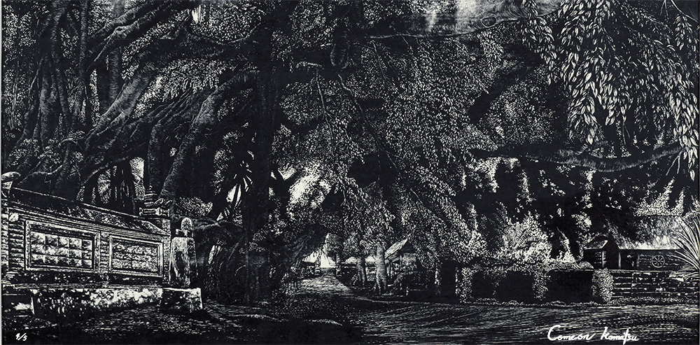スケッチをしていると村の老人が寄ってきて、「決してこの木の葉1枚でも採ってはならないよ。もし採ったらお前の記憶は無くなる!」と言われました。